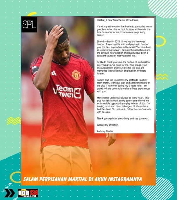 GTA138 – Anthony Martial telah mengkonfirmasi kepergiannya dari Manchester United setelah sembilan musim.